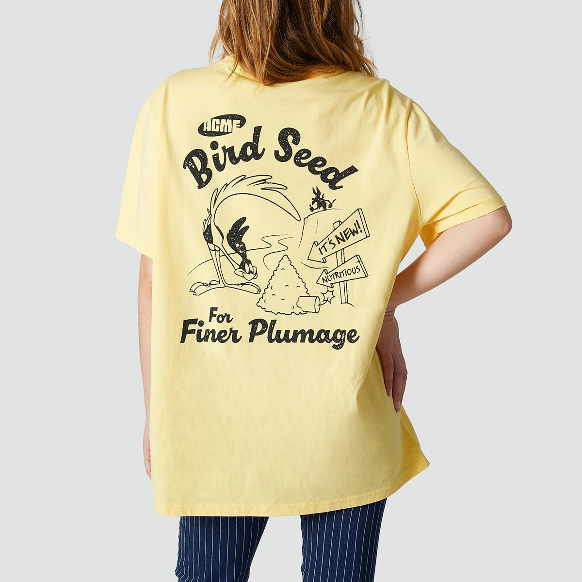 ¡Añade un toque de estilo a tu look con esta camiseta unisex del Road Runner (el Correcaminos)! En amarillo mantequilla, el color neutro estrella de la temporada, esta camiseta combina con todo. Con un diseño impactante del Correcaminos en el pecho y la espalda, es realmente única. Confeccionada con algodón orgánico ultrasuave, ofrece comodidad total durante todo el día. Su corte holgado y relajado la convierte en un básico imprescindible para cualquier plan.